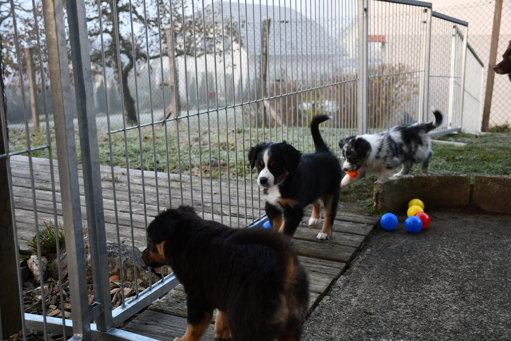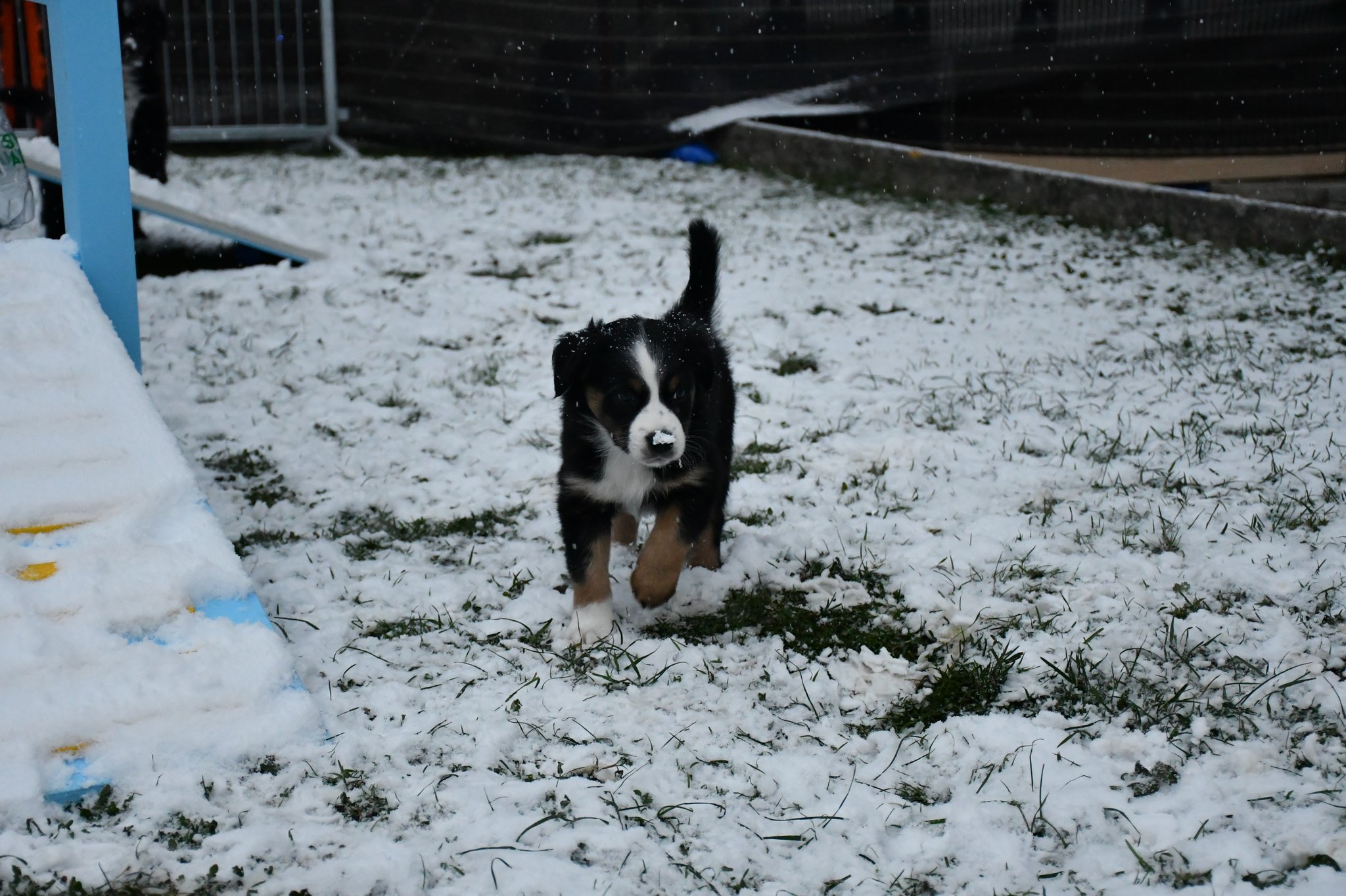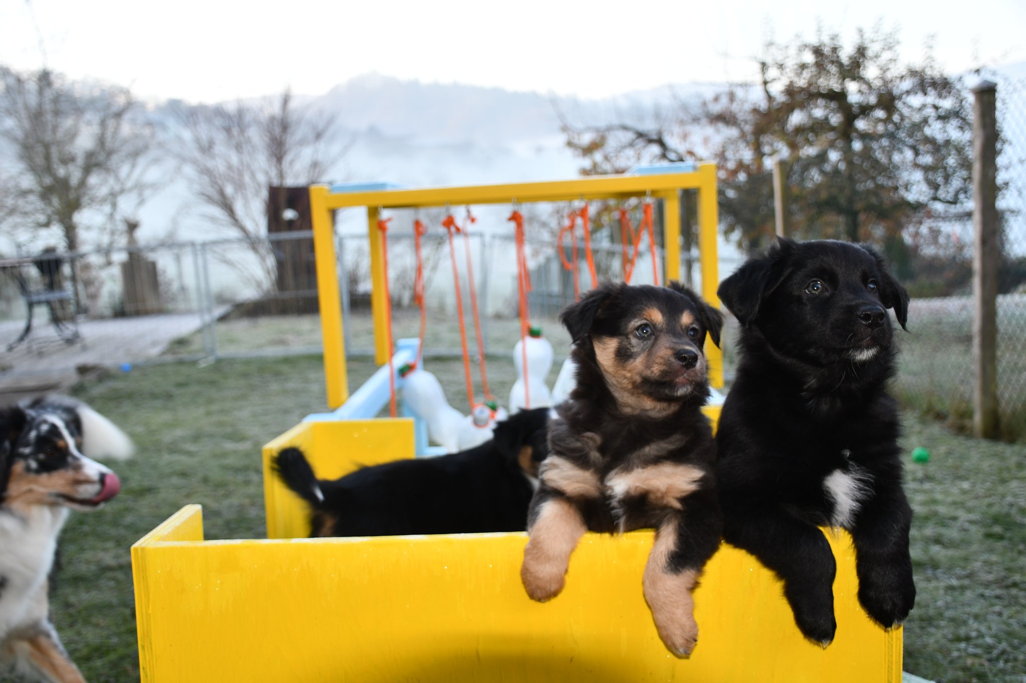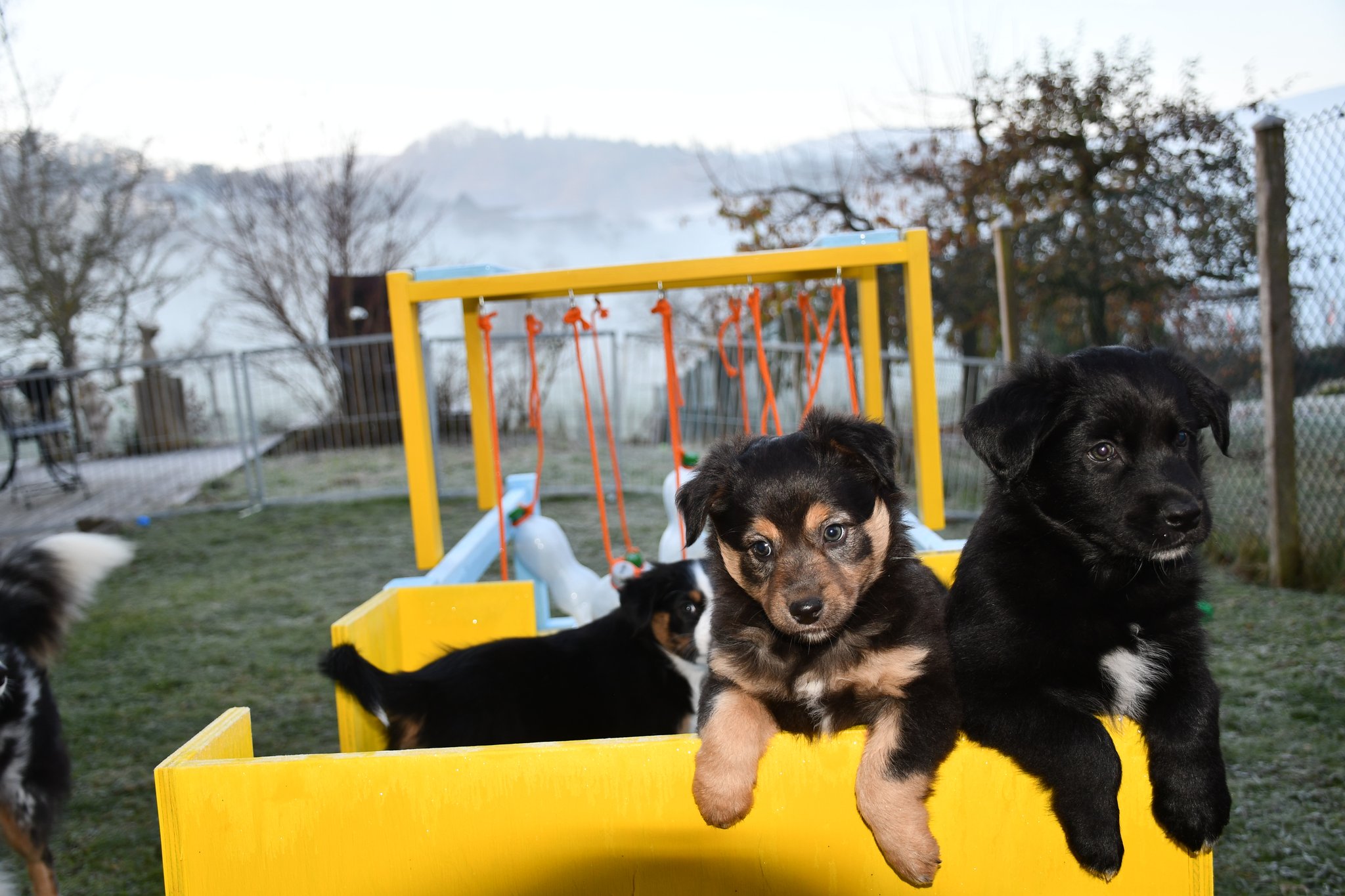 Eisplatten schlecken, gefrorenes Gras fressen, glatte Holzplanken erkunden - die Welpen müssen gut überwacht werden...