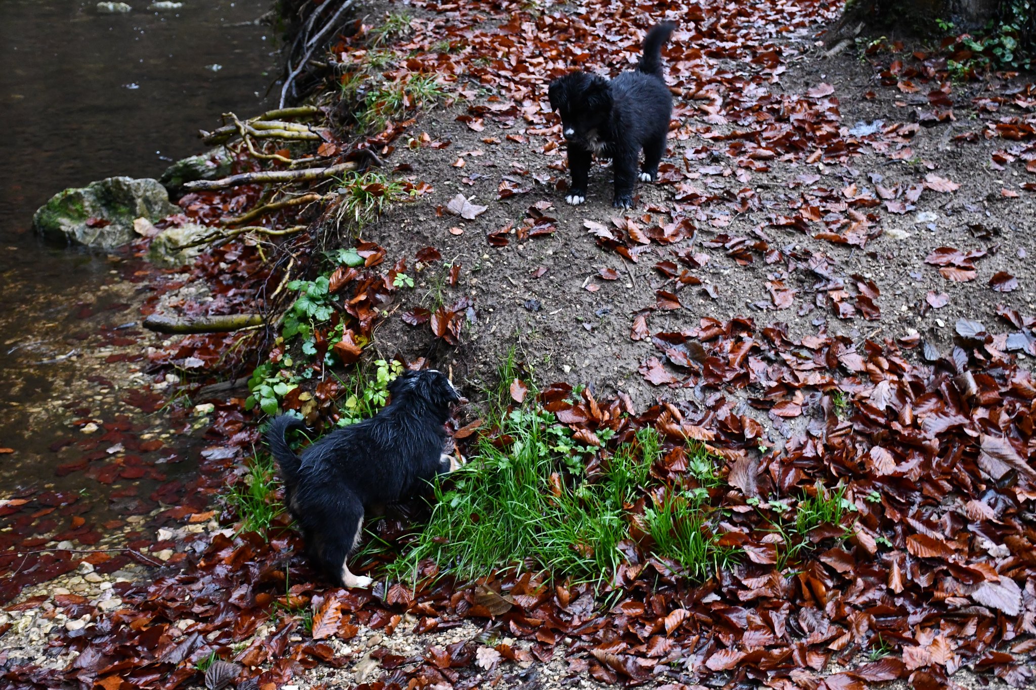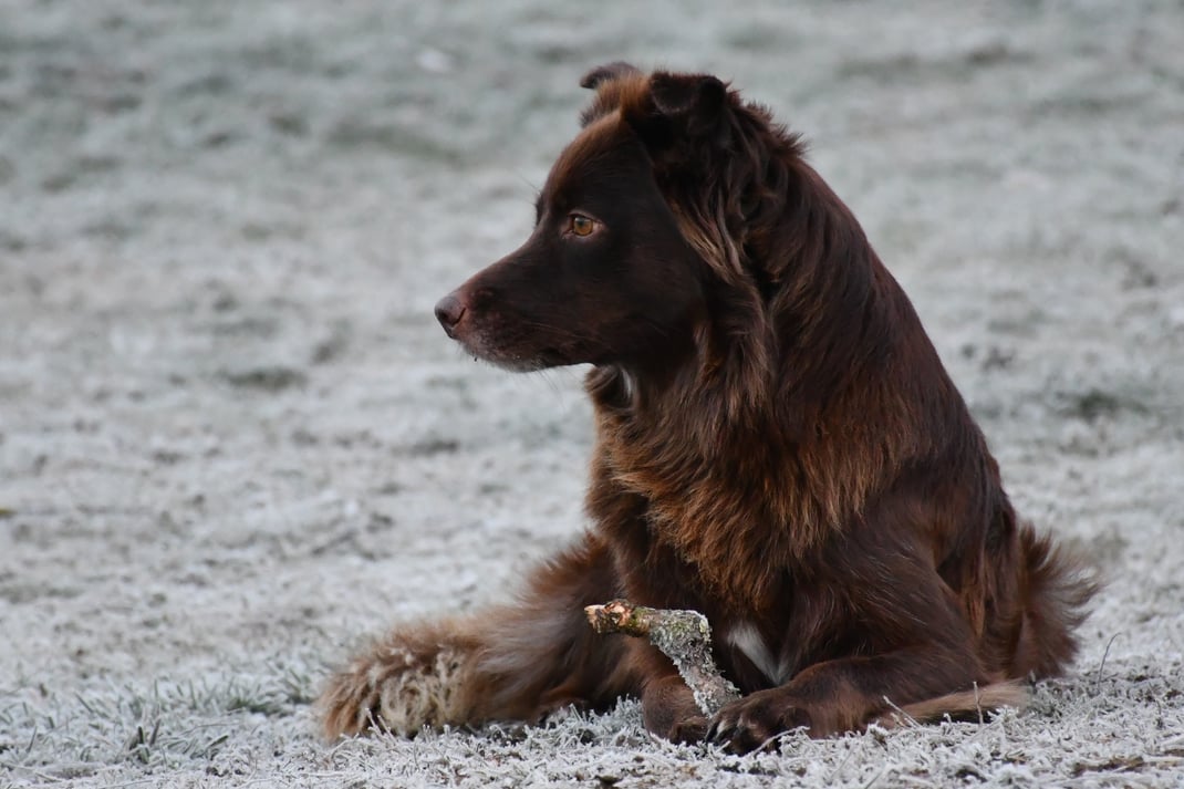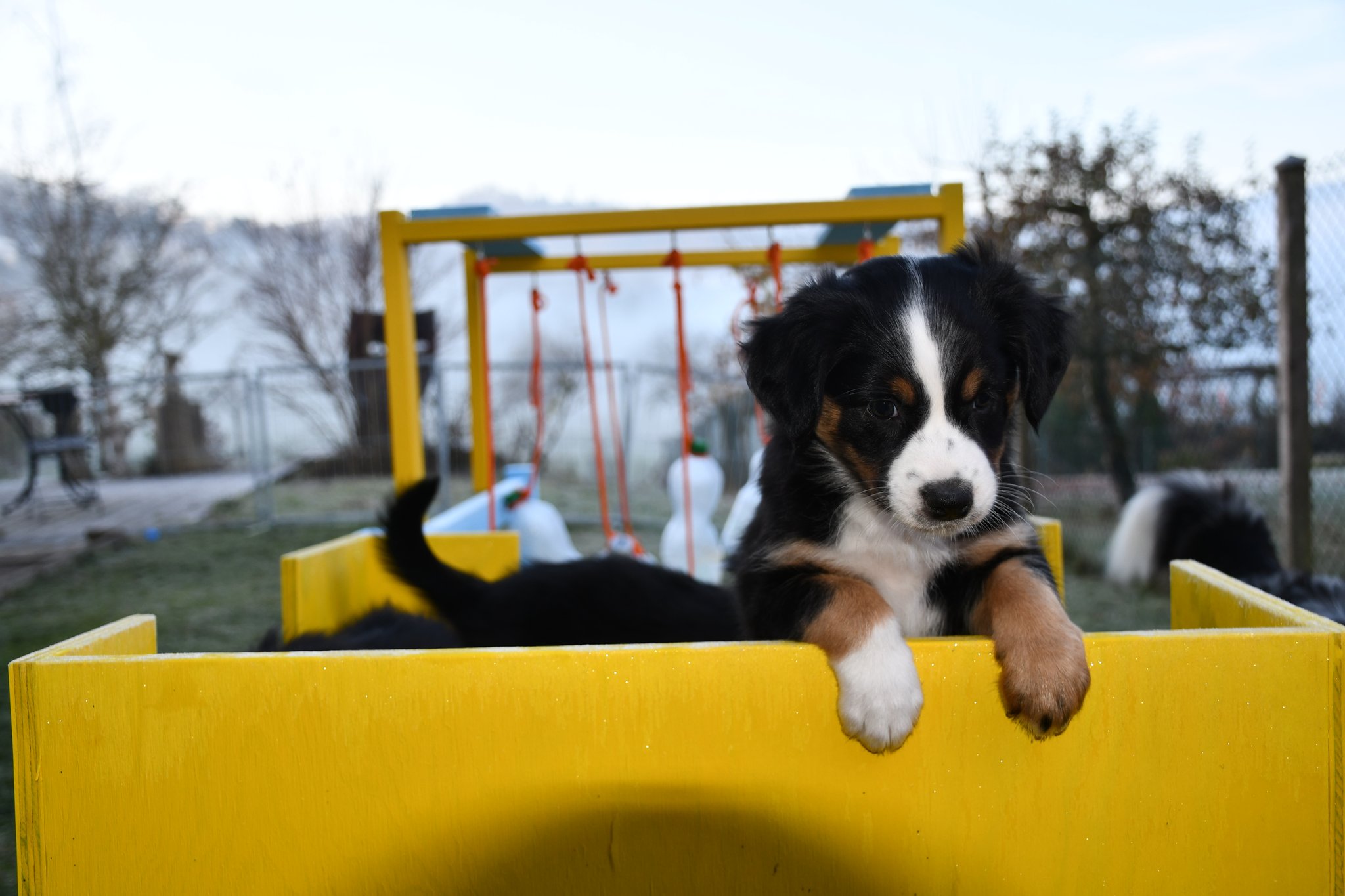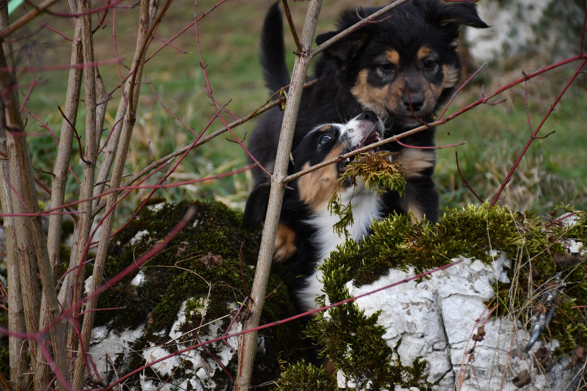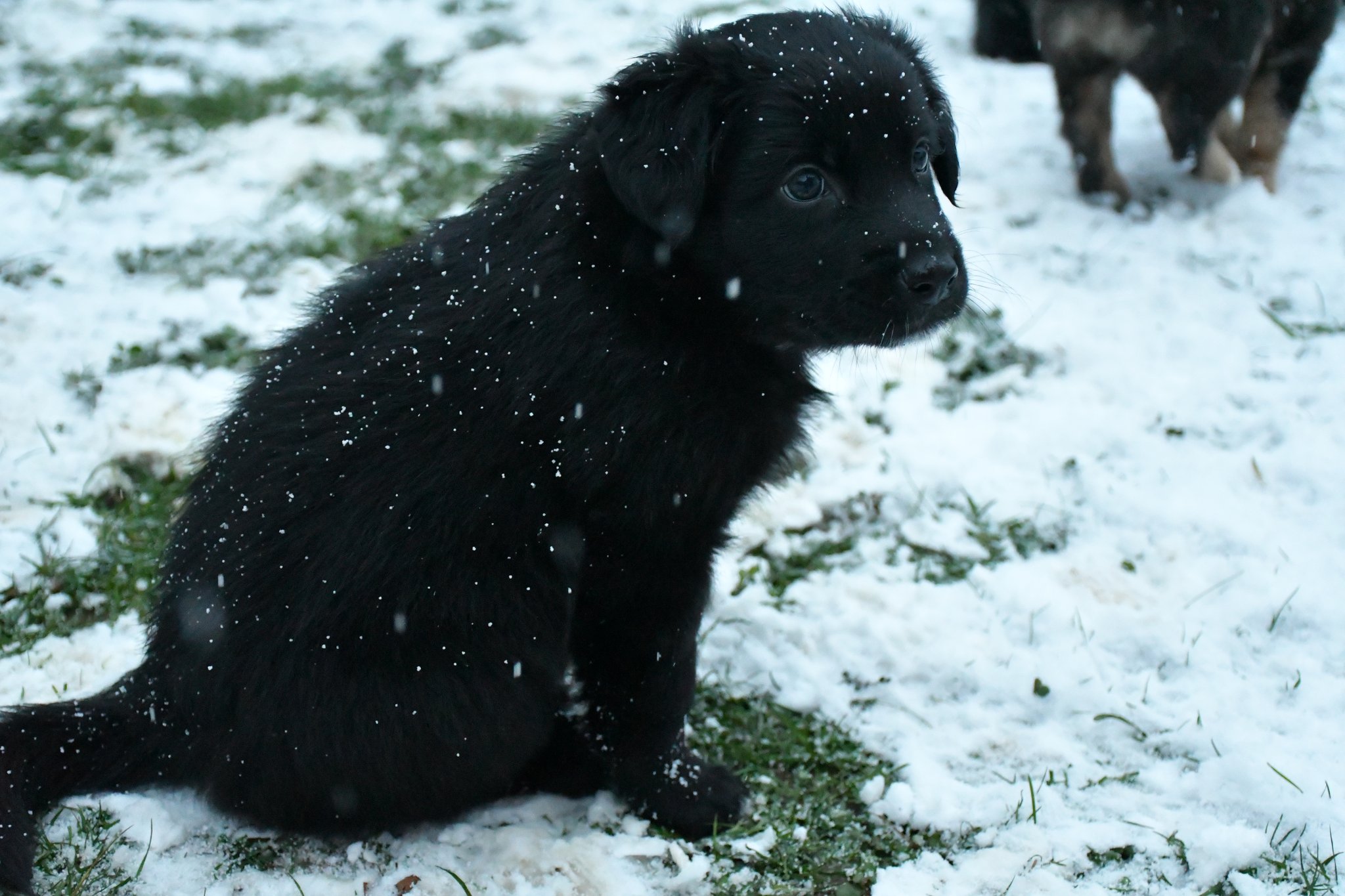 Eisplatten schlecken, gefrorenes Gras fressen, glatte Holzplanken erkunden - die Welpen müssen gut überwacht werden...