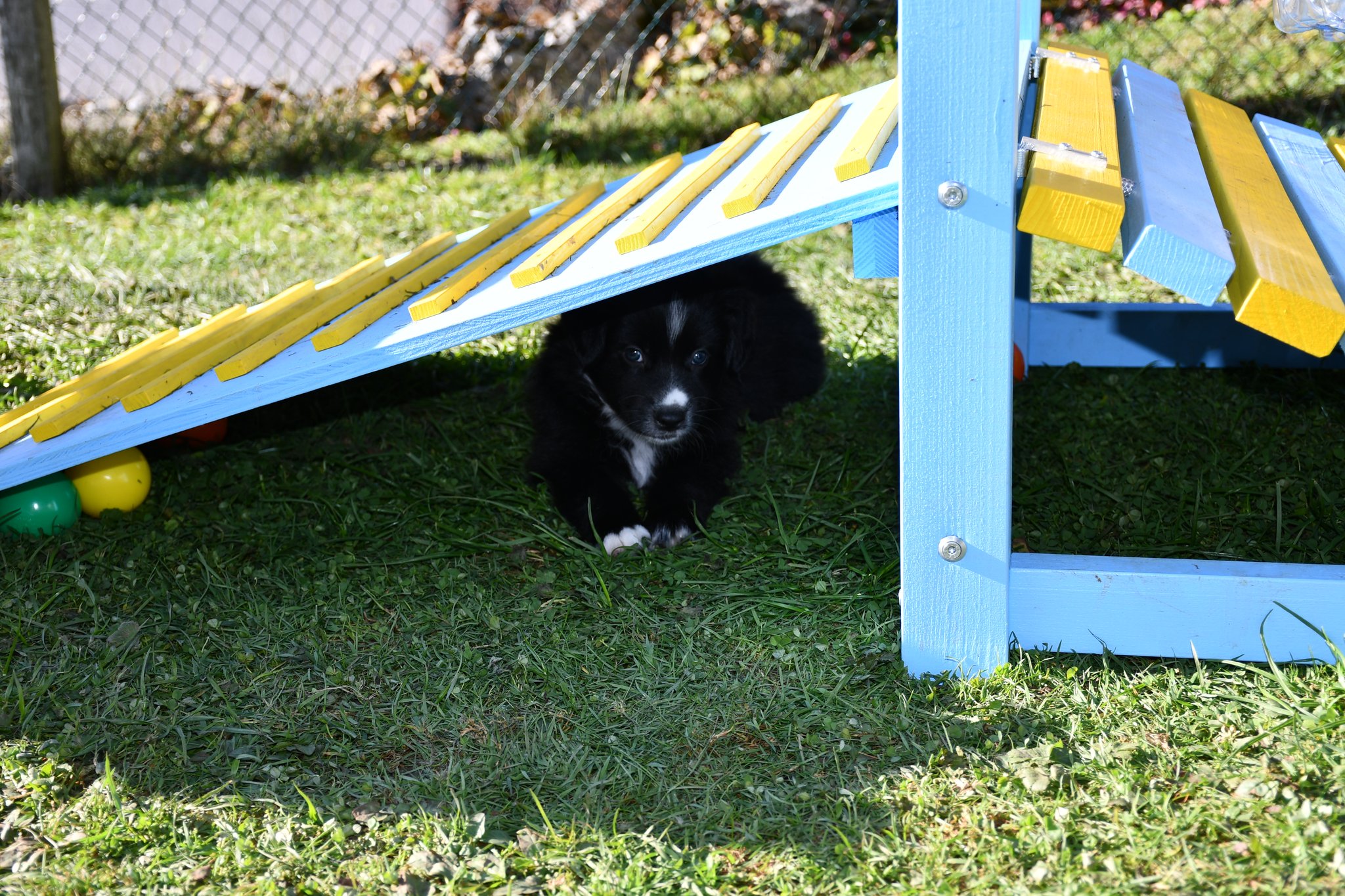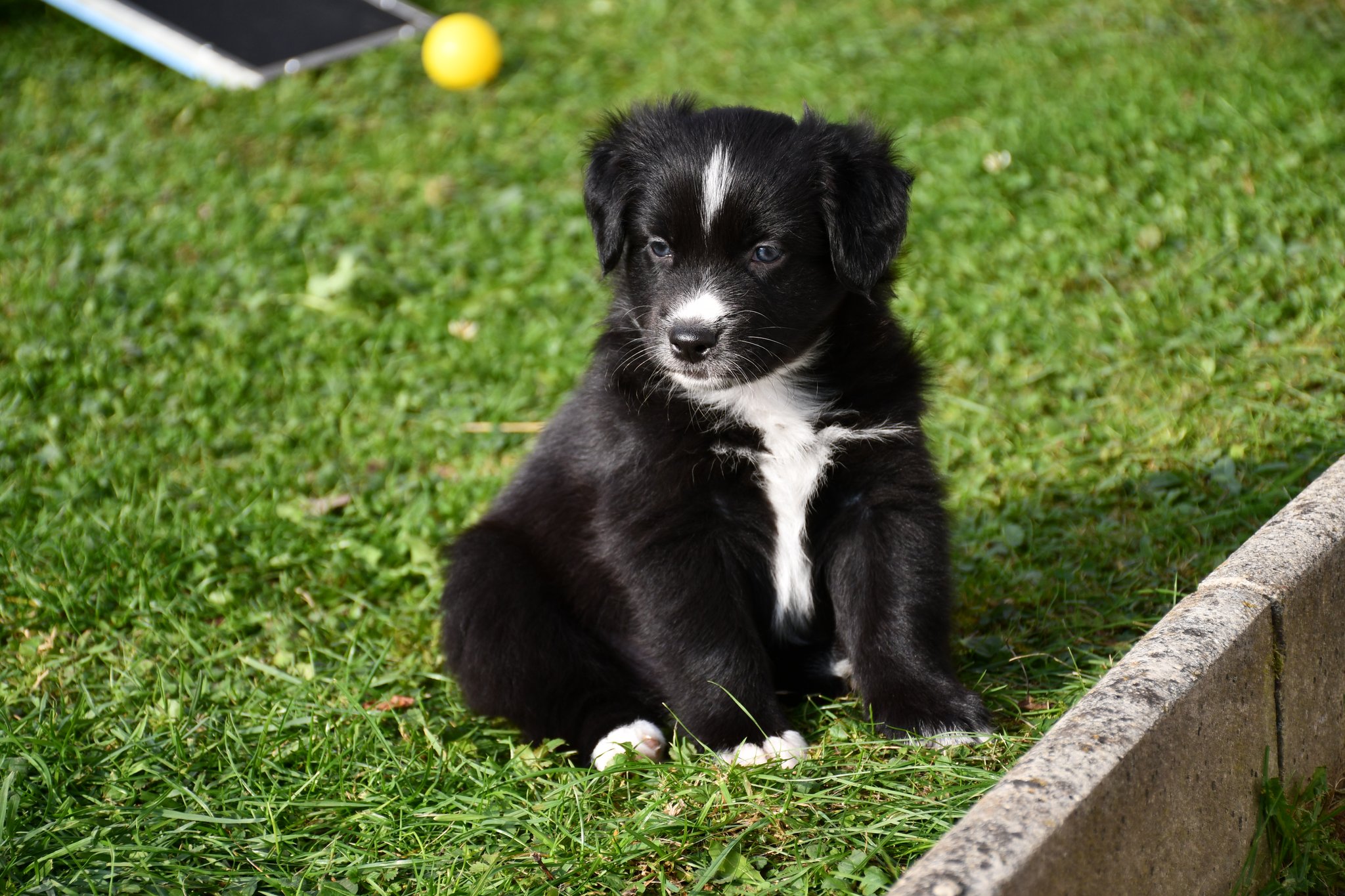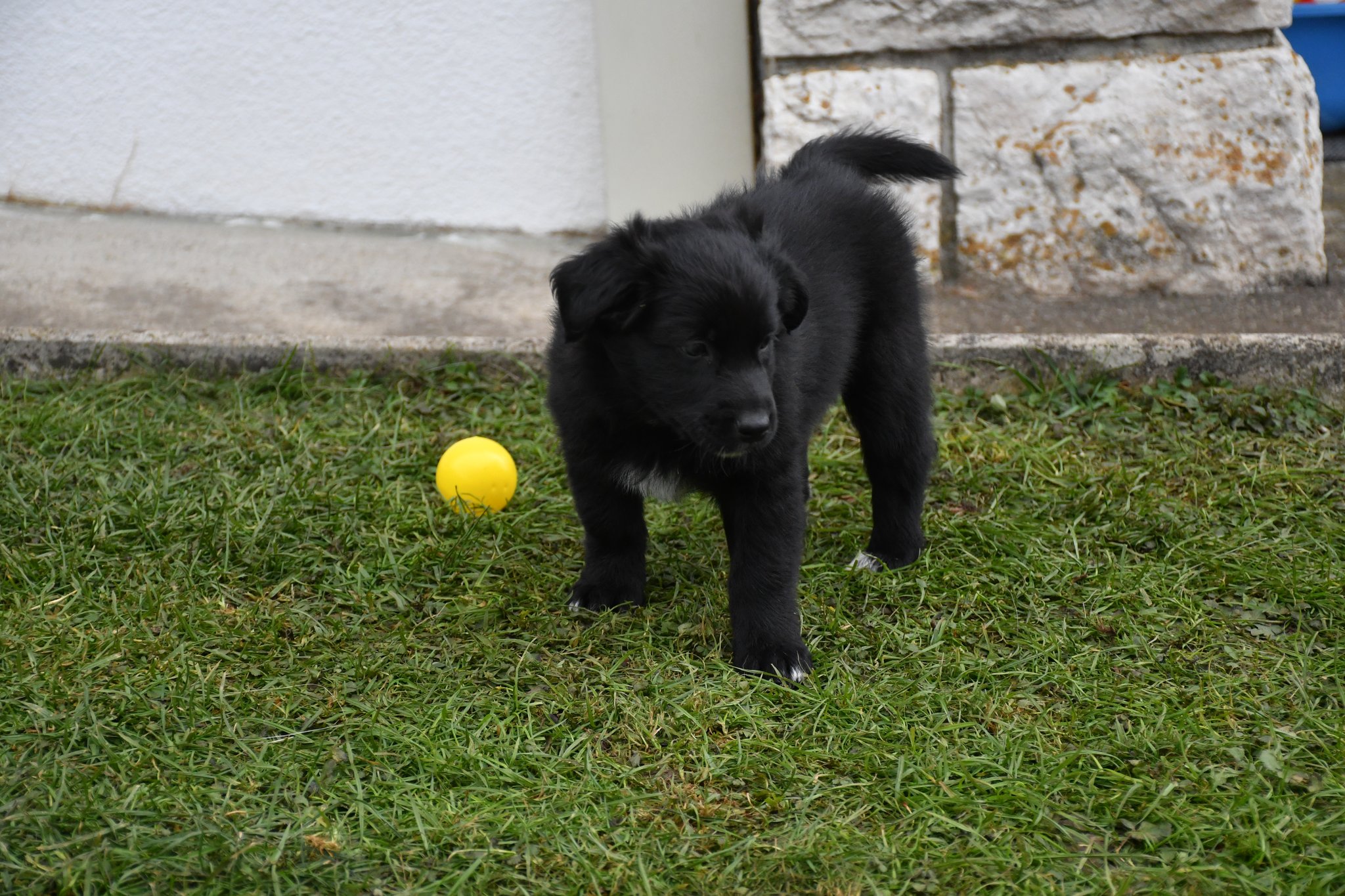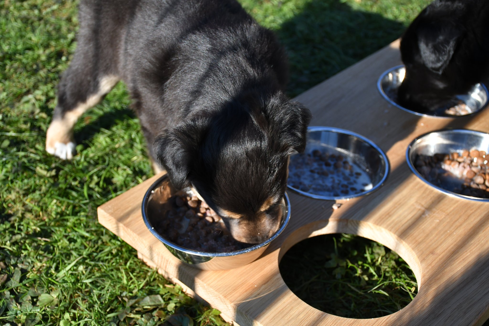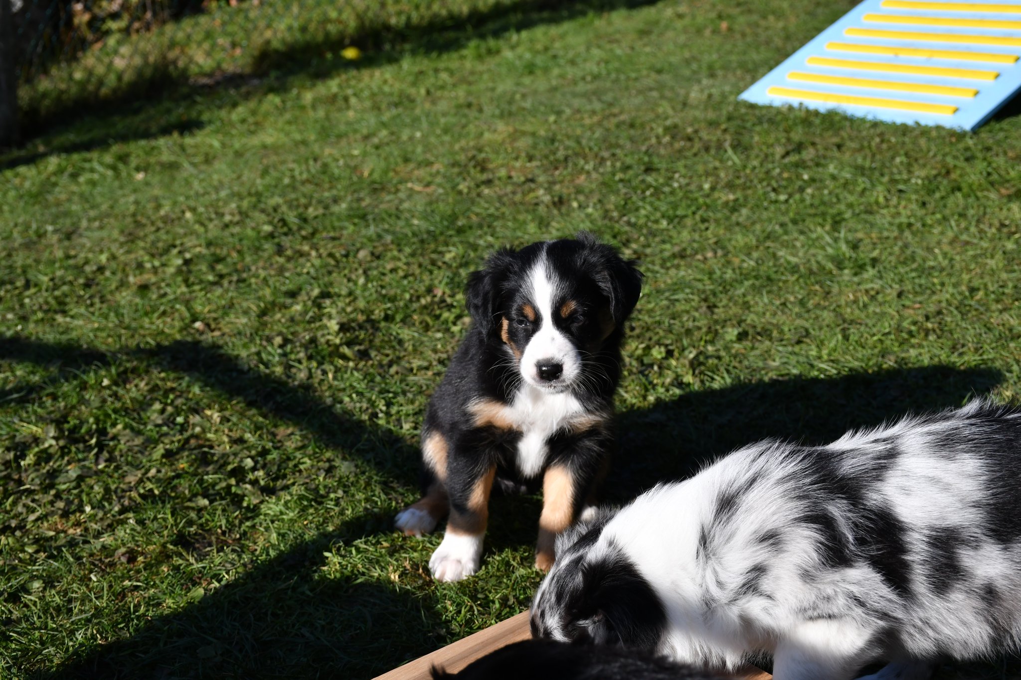 Unsere Züchter haben extra ein paar Quadratmeter Rasen des sonst trockenen und braunen Gartens gewässert und gehätschelt. Jetzt geniessen wir das fette und kitzlige Gras und andere Bodenbeläge. Und wir schiessen tolle Fotos :-)