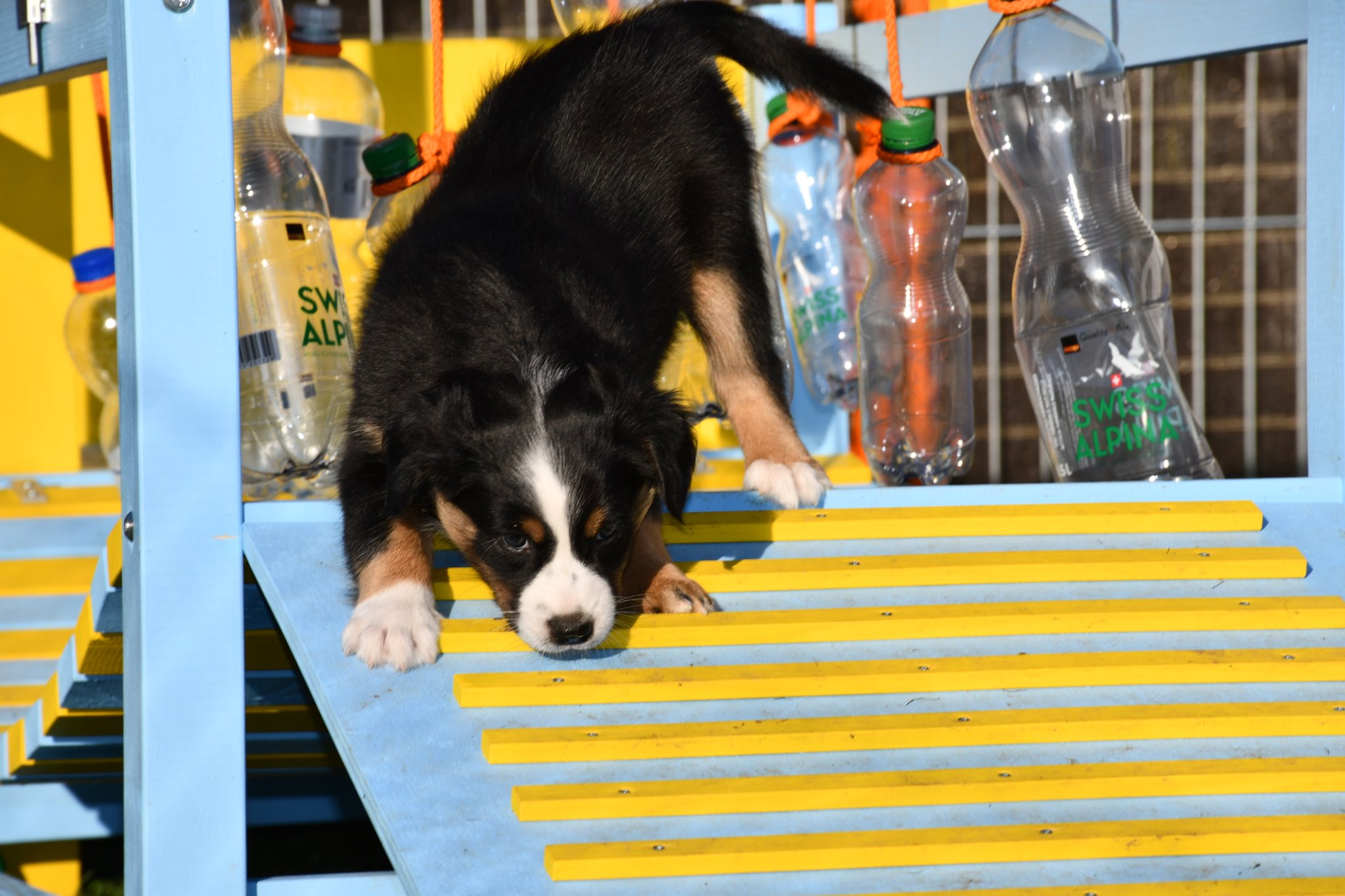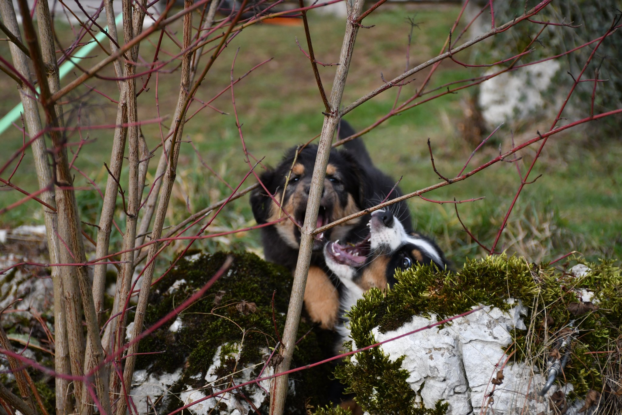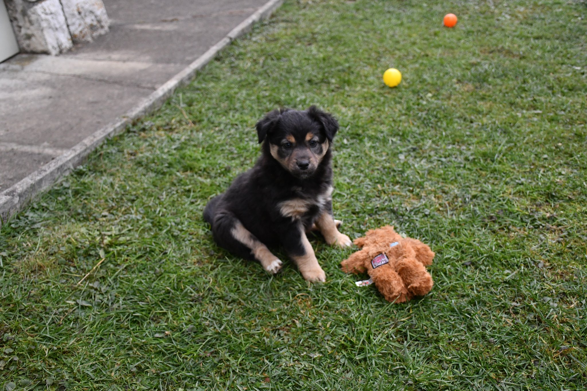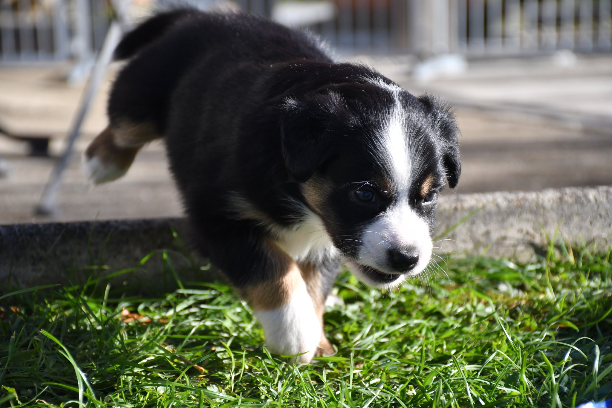 Unsere Züchter haben extra ein paar Quadratmeter Rasen des sonst trockenen und braunen Gartens gewässert und gehätschelt. Jetzt geniessen wir das fette und kitzlige Gras und andere Bodenbeläge. Und wir schiessen tolle Fotos :-)