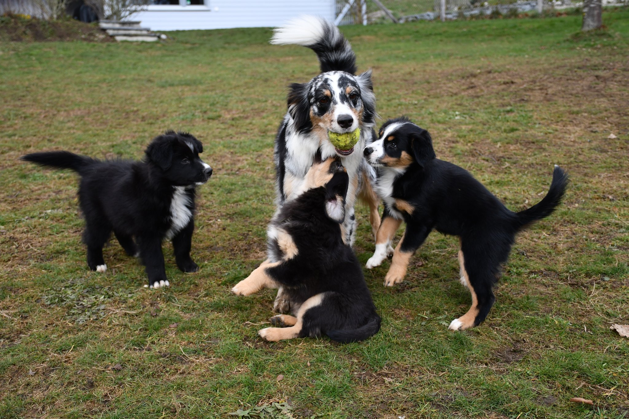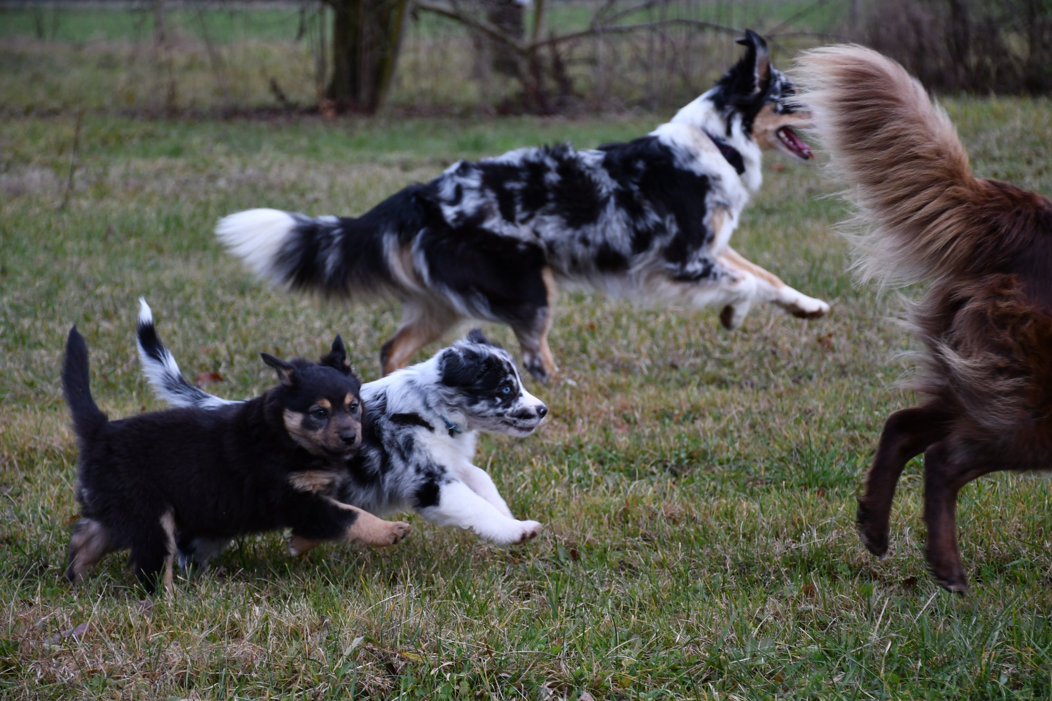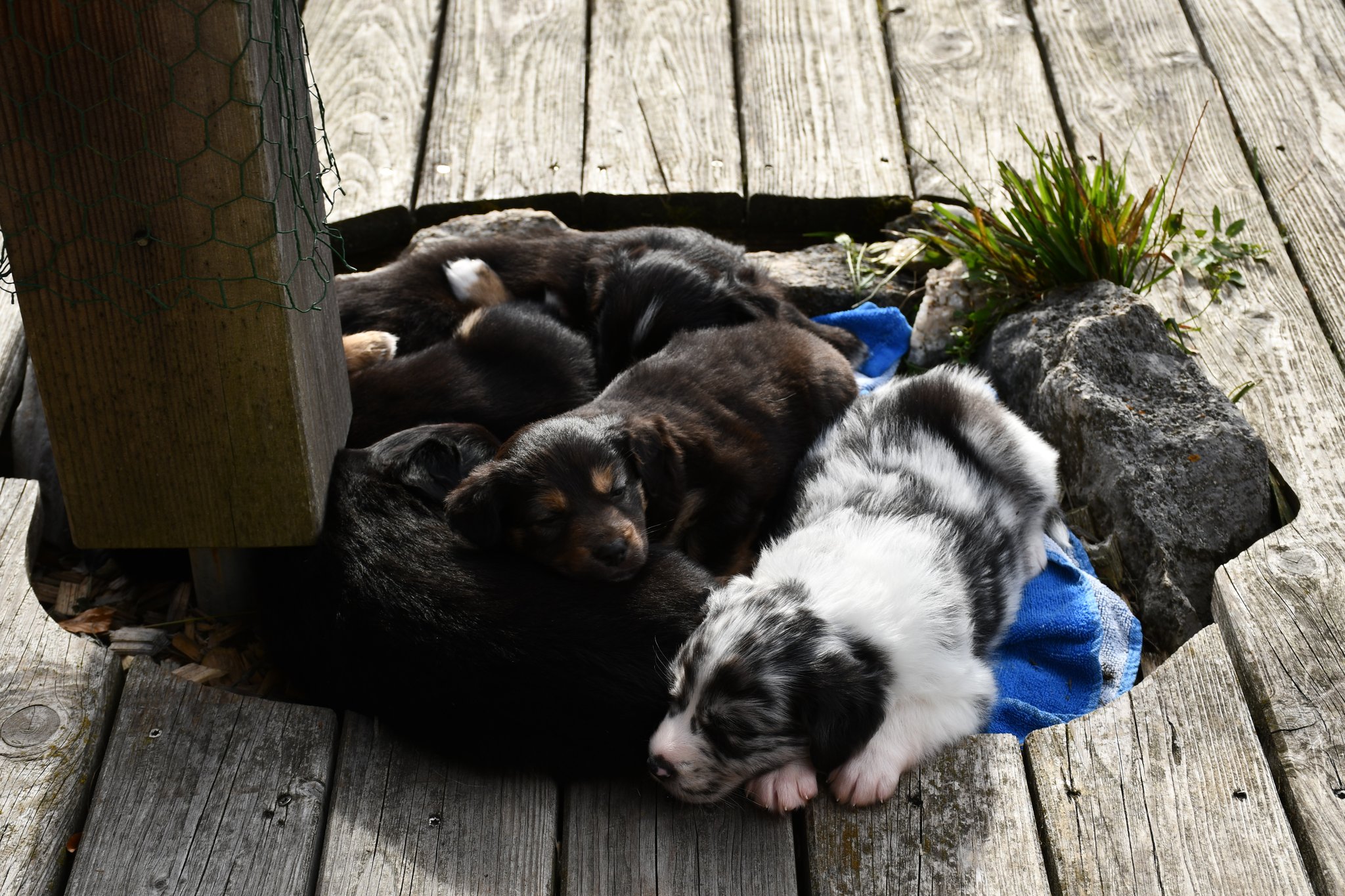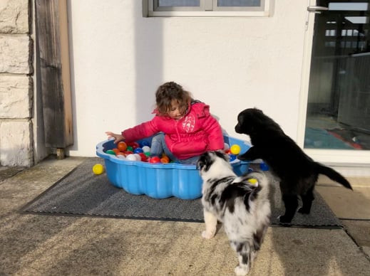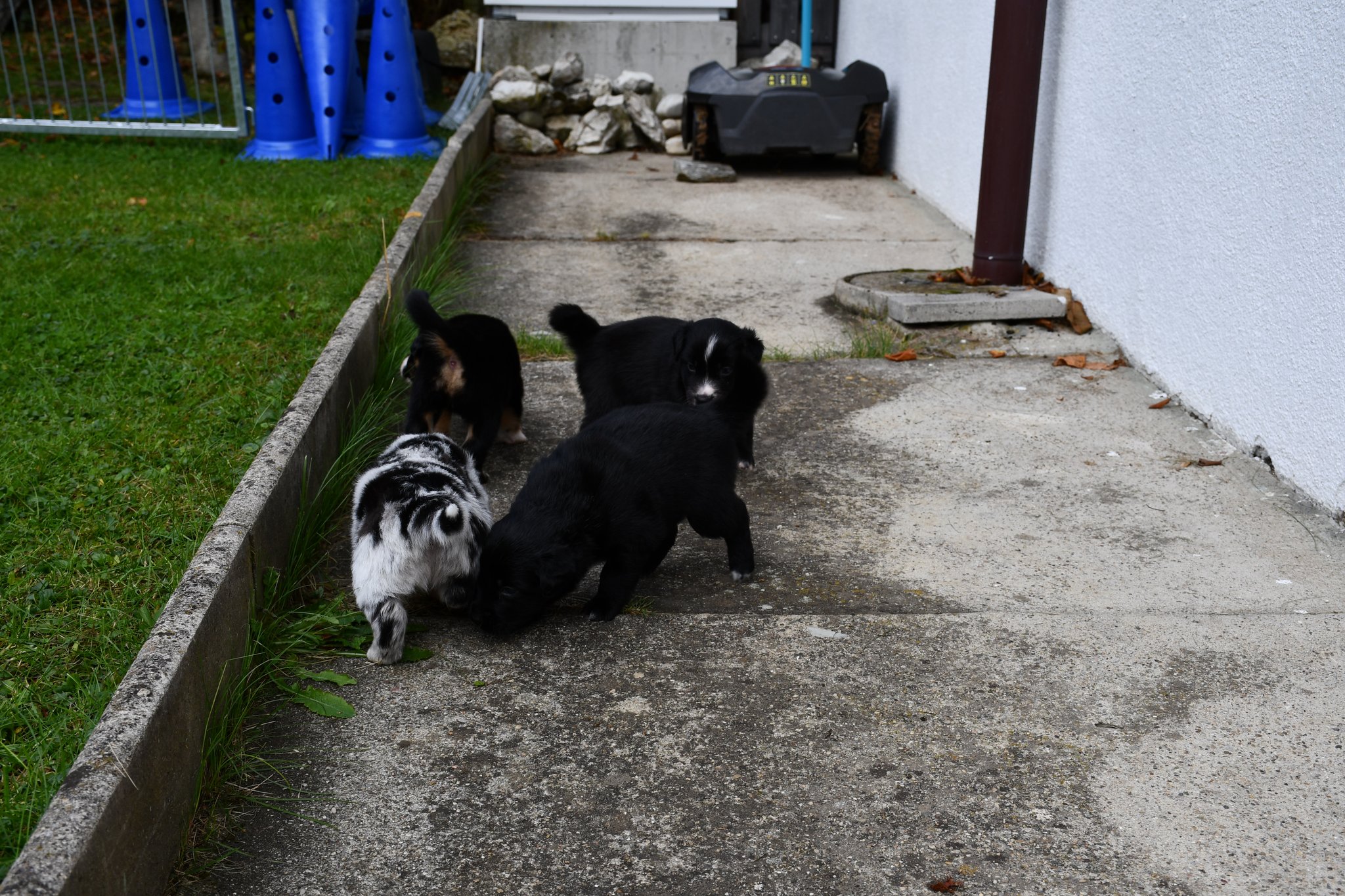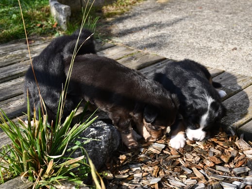 Ein einigermassen scharfes Gruppenfoto zu arrangieren, war bisher fast die schwierigste Aufgabe im A-Wurf Projekt ;-) Der Drang auf den Fotografierenden zuzurennen muss übermächtig sein...
