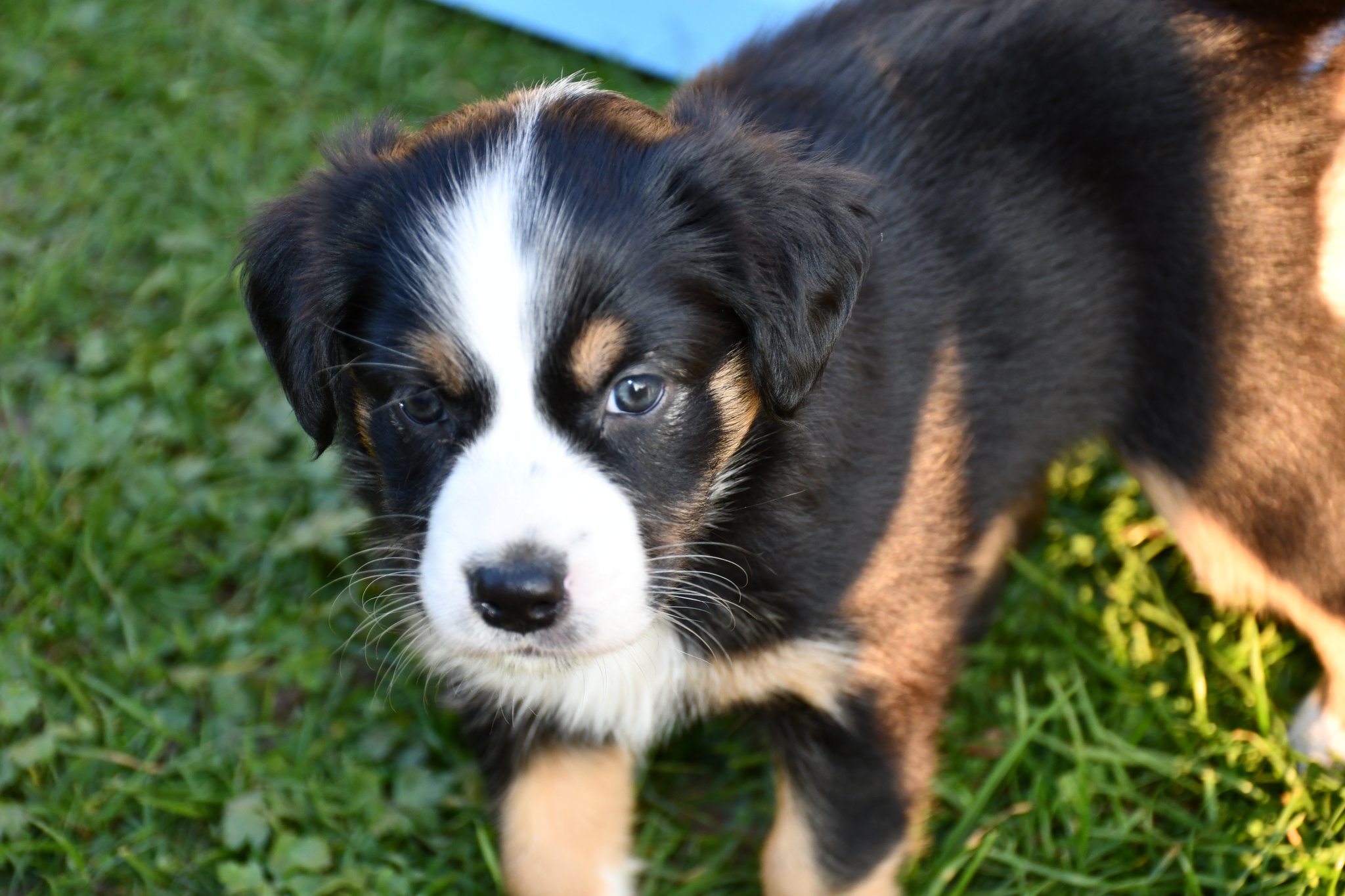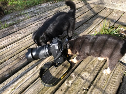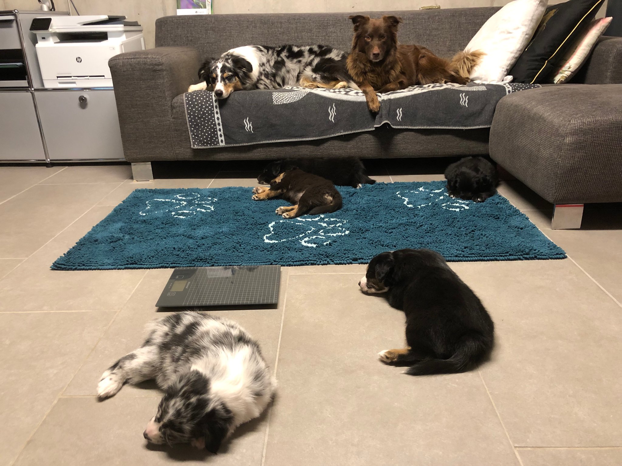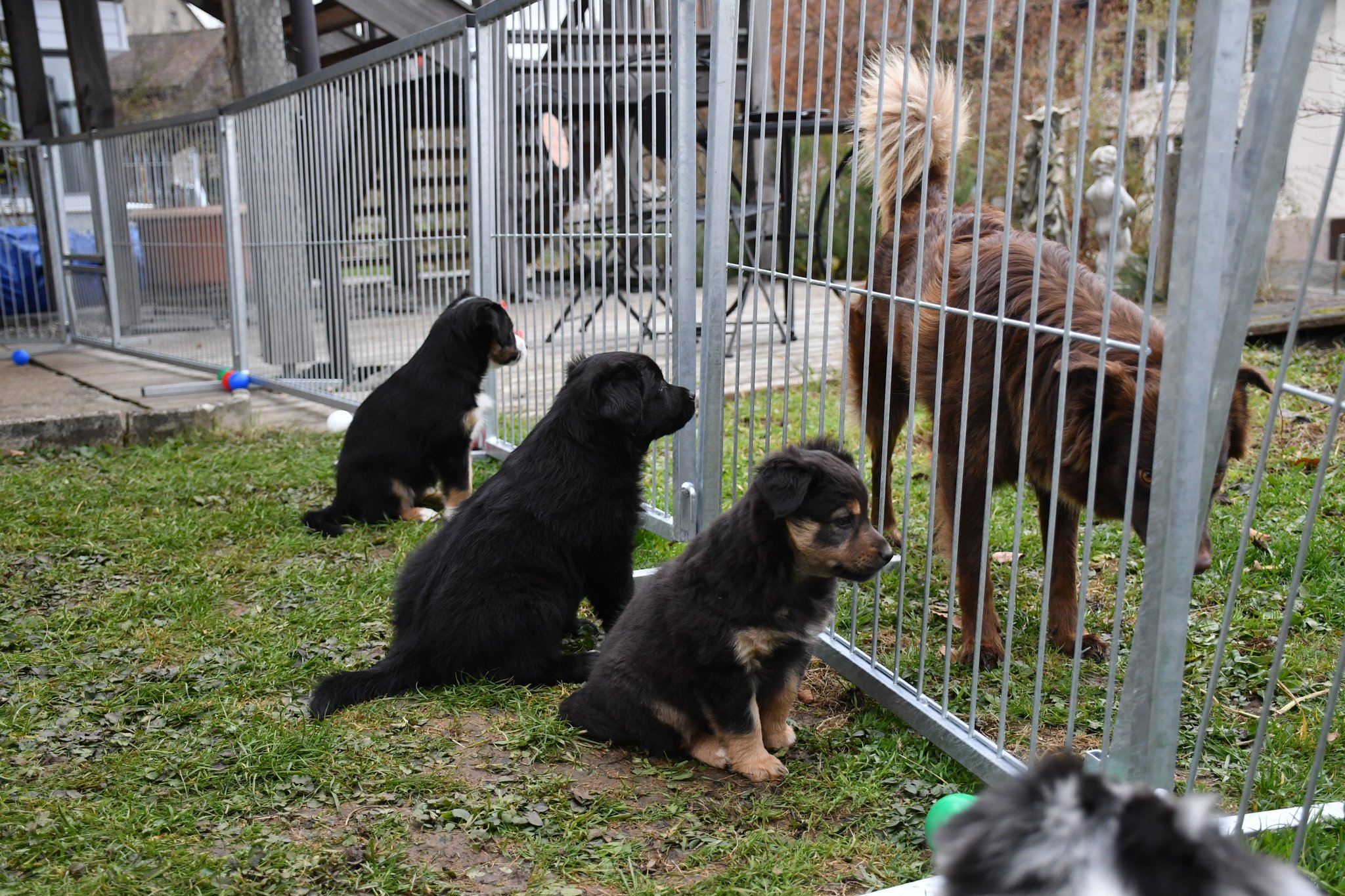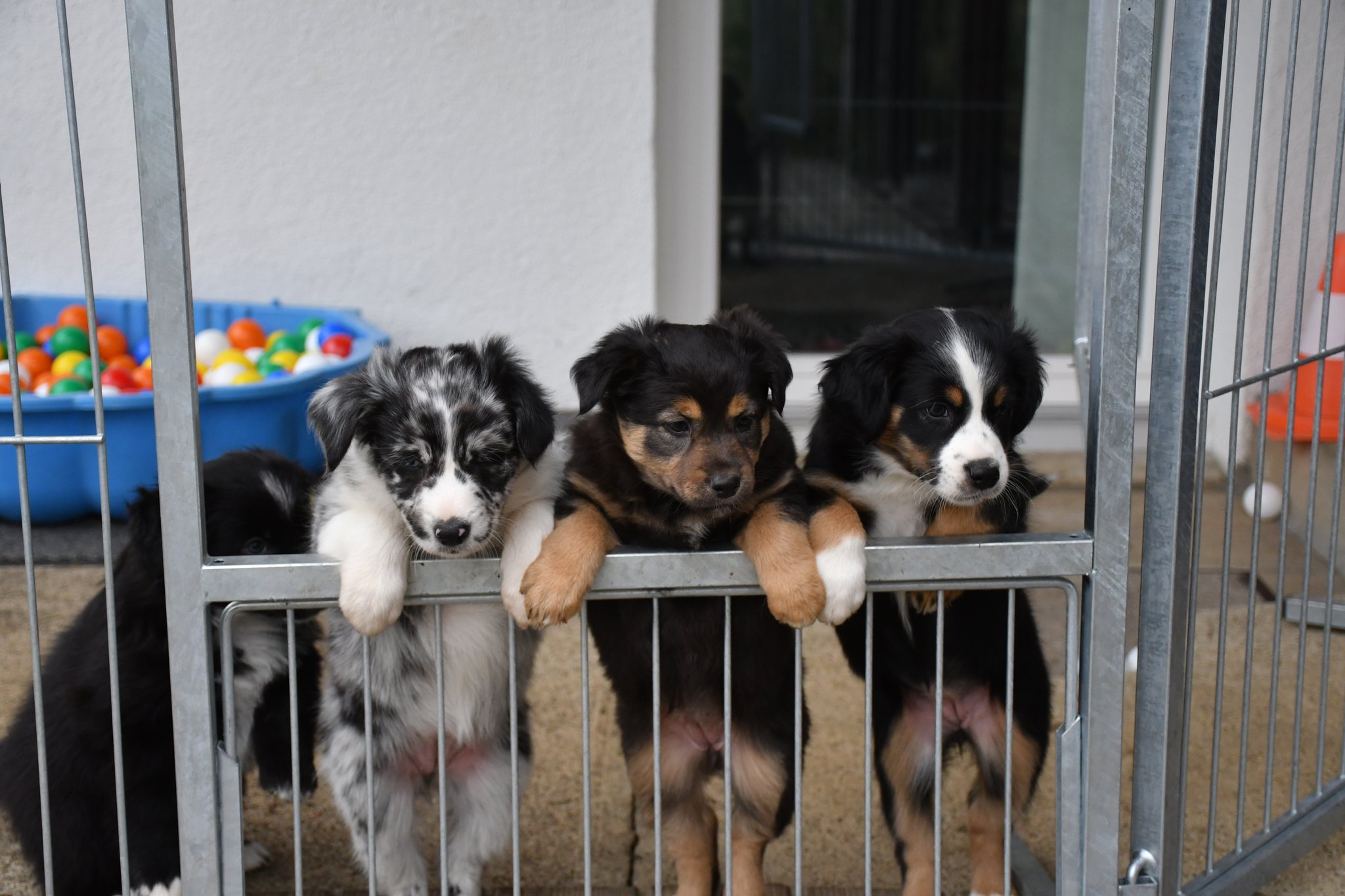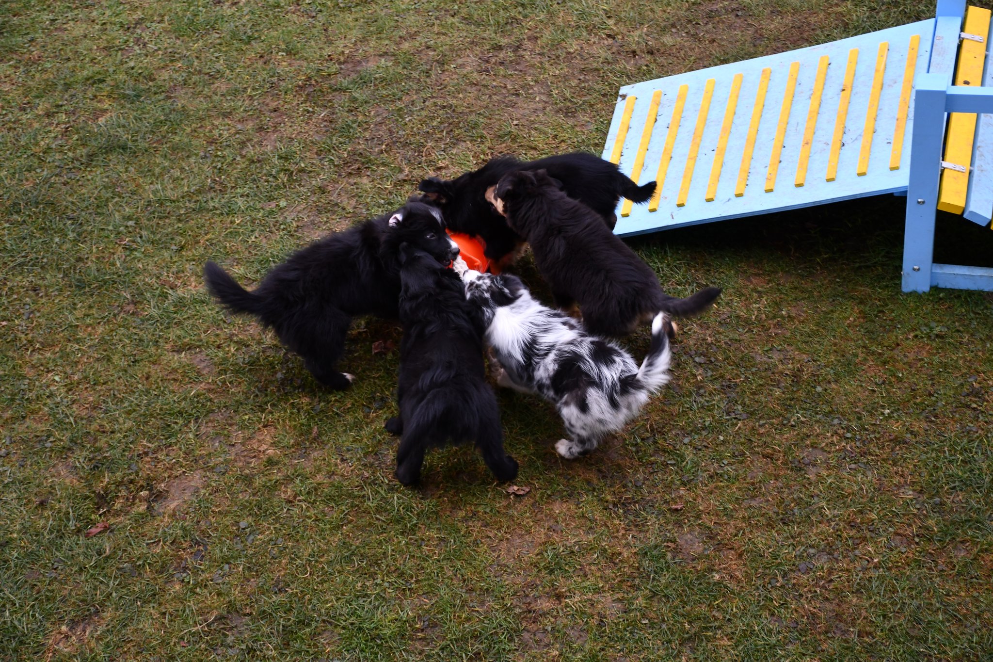 Ein einigermassen scharfes Gruppenfoto zu arrangieren, war bisher fast die schwierigste Aufgabe im A-Wurf Projekt ;-) Der Drang auf den Fotografierenden zuzurennen muss übermächtig sein...