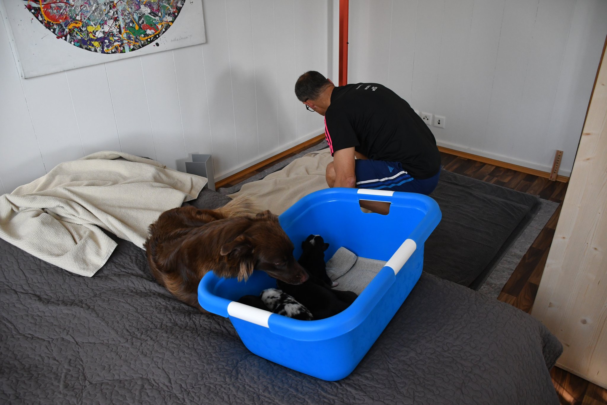 Die Geburts-Infrastruktur steht bereit - inklusive Hirsetierchen und Bettflasche zum Warmhalten.