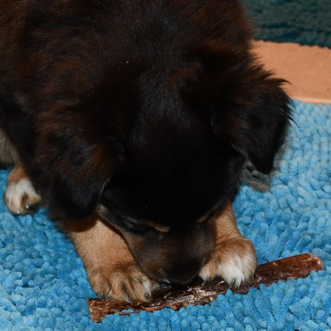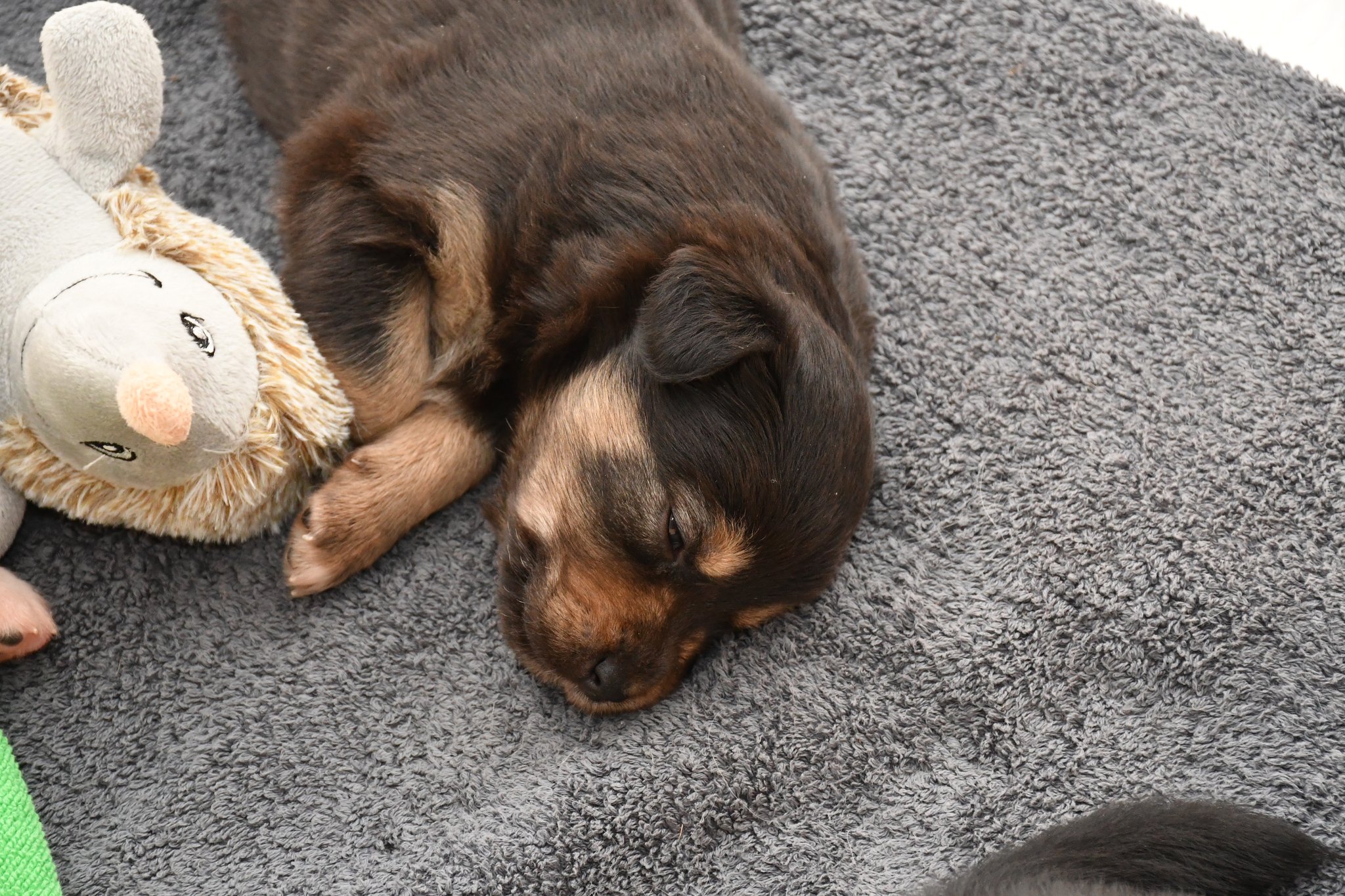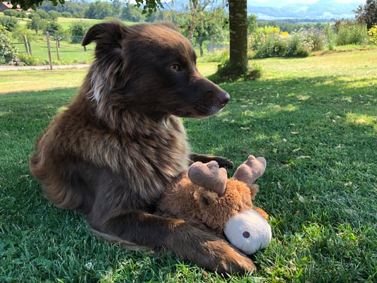 Der geplante Wurf wird nun immer konkreter. In Zwischenzeit übt Fanny schon mal mit Stofftieren...