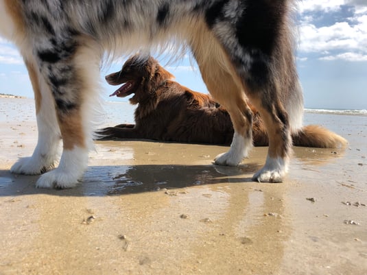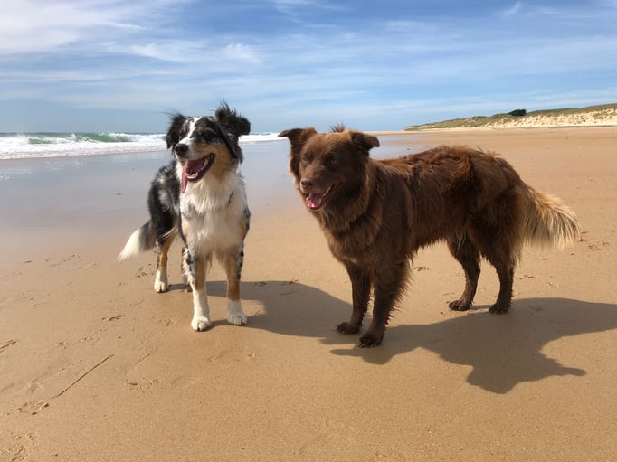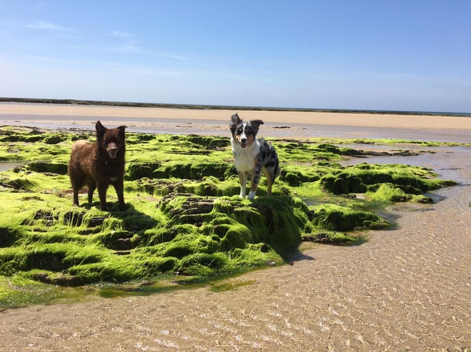 Fanny und Ginny hatten einen Riesenspass in der Normandie: weite, menschenleere Sandstrände, Baden im Meer und austoben in den Sanddünen.