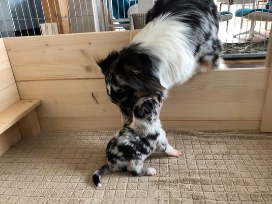 Ginny wird auch ihren Teil zur Welpensozialisierung beitragen.