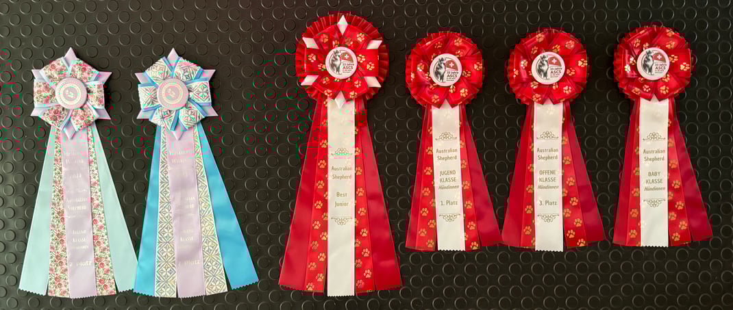 In Donaueschingen (D) wurde Makalu am 24. und 25. August je 2. in der Kategorie Juniors. Heute hat sie alles getoppt mit ihren Siegen in der Kategorie Juniors und als "Best Junior", was bedeutet dass sie auch noch alle Rüden hinter sich gelassen hat. Bravo Makalu! Und auch Emily hat gepunktet: 3. Rang im 15-köpfigen Teilnehmerfeld in der starken Hauptklasse. Bravo Emily! Joséphine hat in der Babyklasse erste Ringluft geschnuppert und ein "vielversprechend" erhalten. Gut gemacht!