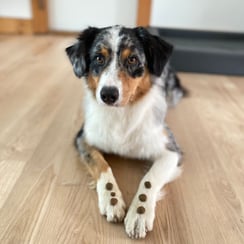 …zu sein ist manchmal schwierig. Unsere Chloé ist Anfang Woche in ihre neue Familie abgereist. Bei der Zuchtröntgen-Untersuchung wurde leider ein Lumbosakraler Übergangswirbel Typ 3 diagnostiziert. Diese Fehlstellung des Skelettes kann zu einem erhöhten Arthroserisiko im Alter führen. Es gibt noch keine gesicherten Langzeiterkenntnisse, der Defekt scheint aber genetisch vererbbar zu sein. Wir werden Chloé deshalb trotz erfolgreicher Ankörung und obschon Züchten mit einem freien Rüden grundsätzlich erlaubt wäre, nicht zur Zucht verwenden. Chloé lebt jetzt in einer Familie mit zwei Erwachsenen, zwei Mädchen im Vor-Kindergartenalter und einem Mini Aussie Rüden. Sie scheint glücklich zu sein und zeigt sich sehr behutsam und zutraulich im Umgang mit den beiden Kindern. Alles Gute, liebe Chloé!