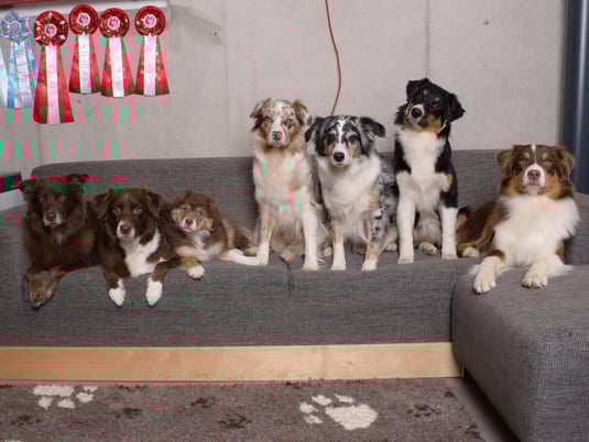 Nach einer problemlosen Tragezeit hat Lily in einer ruhigen Geburt zwei Rüden und fünf Hündinnen hervorgezaubert. Lily und die sieben Welpen sind fit und gfrässig.
