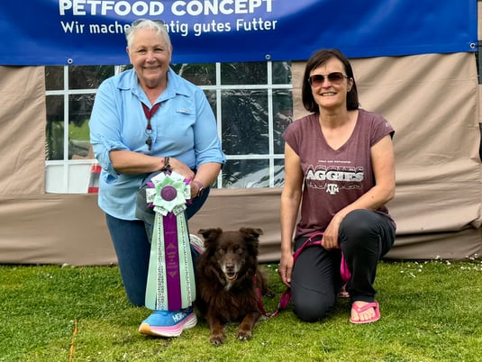 ...zusammen mit der aktuellen ASCA-Präsidentin Susan B. Byrne aus Texas fotografiert zu werden. Fanny ist heute Veteranensiegerin am WASCA-Agility-Meeting in D-Viersen geworden. Hut ab vor Susan B. Byrne, sie arbeitet als Präsidentin nicht nur im Office, sondern ist auch als Richterin im Einsatz an der Front bei den Mitgliedern. Heute sogar in good old Europe :-)